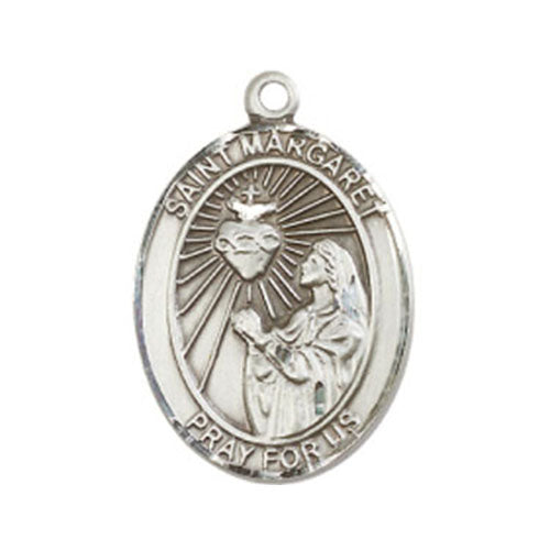 St. Margaret Mary Alacoque Pendant. The medal measures 1 x 3/4 and is available in Sterling Silver on a 24S Chain, Gold Filled on a 24G Chain and 14 Karat Gold - No Chain. St. Margaret Mary Alacoque is the patron saint of Polio/Loss of Parents