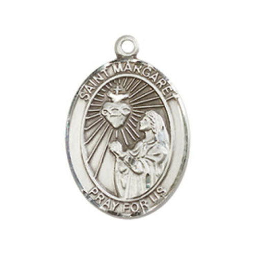 St. Margaret Mary Alacoque Pendant. The medal measures 3/4 x 1/2 and is available in Sterling Silver on a 18SS Chain, Gold Filled on a 18GF Chain and 14 Karat Gold - No Chain. St. Margaret Mary Alacoque is the patron saint of Polio/Loss of Parents