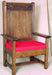 Beautiful wooden side chair with arms and wooden back measures 24"W x 23"D x 48"H and is available in 16 different wood finishes and many fabrics.