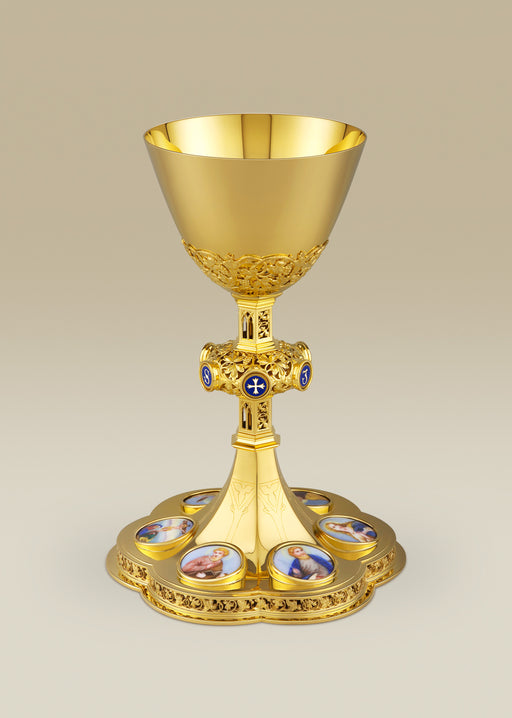 Original price $0.00 - Original price $6,600.00Original price$0.00 - $6,600.00$0.00 - $6,600.00Current price $0.00| /12 1/4" Ht. dia. 4 1/2". Case included, Gold plated brass. Gold throughout, silver medallions on base, blue cross on base. Chalice sold separately.