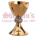 Chalice is a classic style metal ware piece made in brass and hand hammered finish. It is available with a brass two tone, a sterling silver cup and all sterling silver finish.
