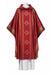 This Chasuble is made of 69% Polyester, 21% man-made fibers and 10% Lurex.  These vestments are woven in a lightweight poly-weave and have a gothic cut with a 61" width and 51" length and include an inner Stole.