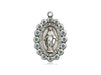 Beautiful Sterling Silver Miraculous Medal with Aqua Stones comes with an 18" Light Rhodium chain.