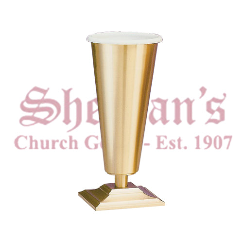 Altar Flower Vase in Satin Finish comes supplied with removable heavy gauge non-tarnishing plastic liner. This attractive altar flower vase in made of bronze with satin finish. Oven baked for durability.