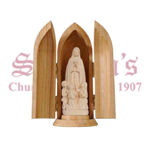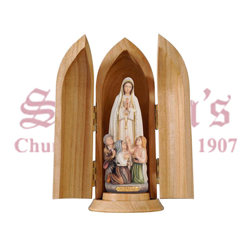 Pema Madonna Fatima With Little Shepherds In Niche Wood Carved Statue